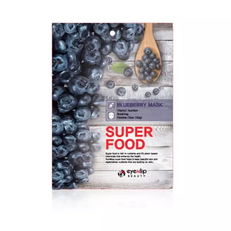Super food mask pack has vaccinium angustifolium (blueberry) extract that makes your skin clear and smooth. Large amount of botanical extracts will provide flexibility to the skin and vitality effect to maintain your skin condition heatthy.
