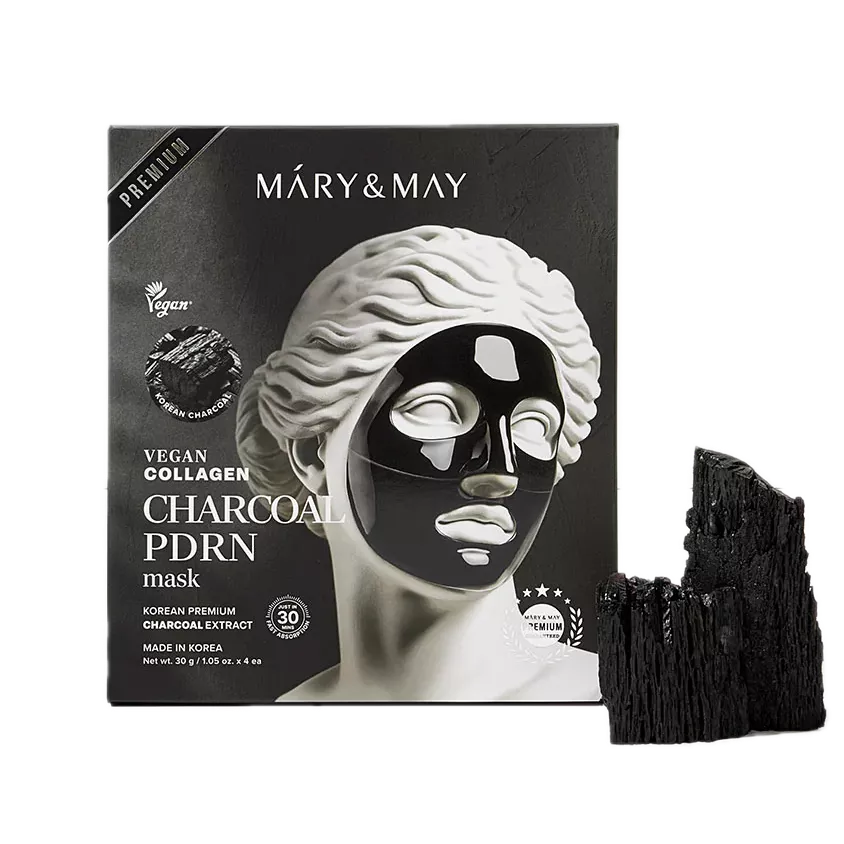 Wholesale Mary&May Vegan Collagen Charcoal PDRN Mask (30g x4 Sheets)