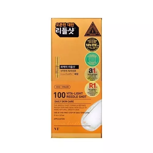 VT 100 Vita-Light Reedle Shot - 2ml*10ea is a Korean skincare product designed for daily routines that prioritize skin comfort and balanced care. The texture absorbs smoothly and layers well with other skincare steps such as toner, serum, or cream. It supports consistent use without leaving a heavy or greasy residue. This product can be used in both morning and evening routines depending on skin needs. Its straightforward application makes it suitable for a wide range of skincare preferences. The versatile format makes it easy to position across multiple skincare categories.