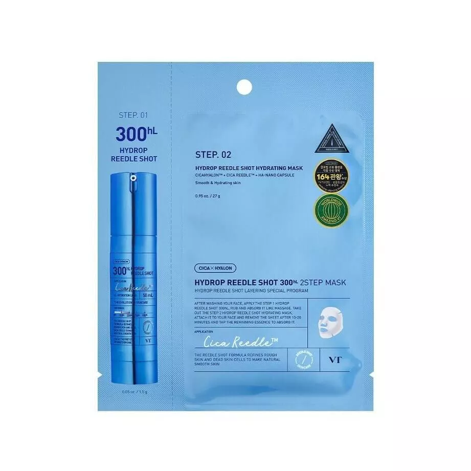 VT Hydrop Reedle Shot 300Hl 2 Step Mask - 1.5g + 27g is a Korean skincare product designed for daily routines that prioritize skin comfort and balanced care. The texture absorbs smoothly and layers well with other skincare steps such as toner, serum, or cream. It supports consistent use without leaving a heavy or greasy residue. This product can be used in both morning and evening routines depending on skin needs. Its straightforward application makes it suitable for a wide range of skincare preferences. The versatile format makes it easy to position across multiple skincare categories.